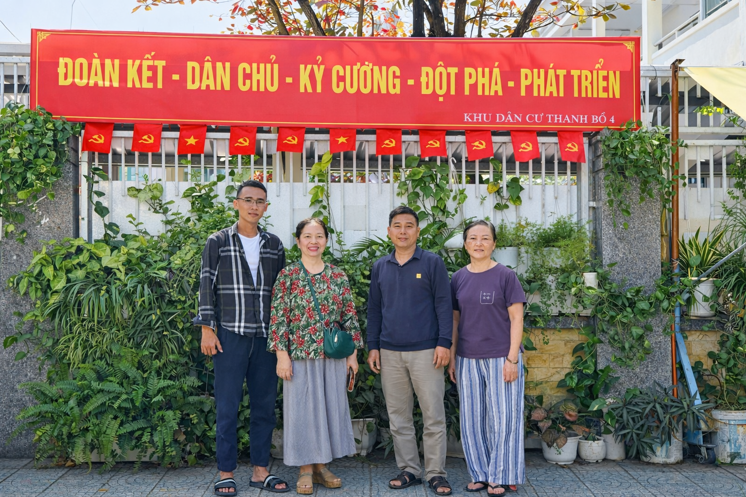 Tại khu dân cư Thanh Bồ 4, công trình trang trí treo cờ Tổ quốc, băng rôn, khẩu hiệu kết hợp trồng và chăm sóc cây xanh đã được triển khai, tạo nên một điểm nhấn rực rỡ, trang trọng trong khu dân cư. Không gian sinh hoạt chung được chỉnh trang khang trang, góp phần lan tỏa niềm tin, niềm tự hào của Nhân dân hướng về Đại hội Đảng toàn quốc lần thứ XIV.