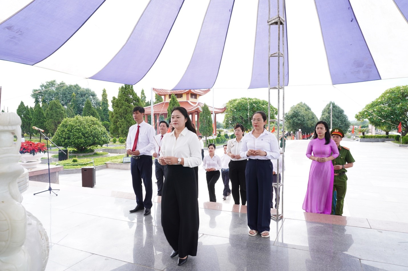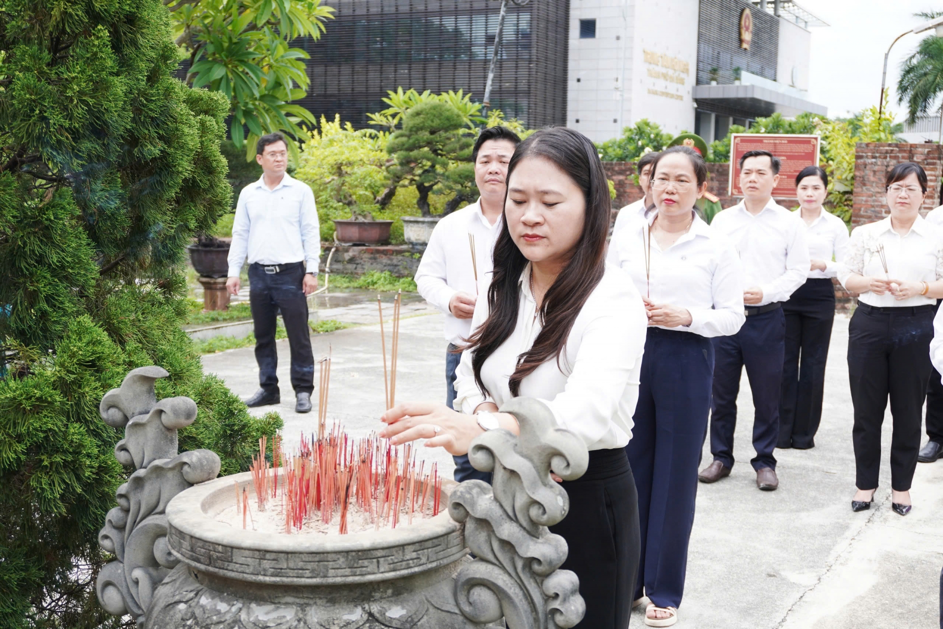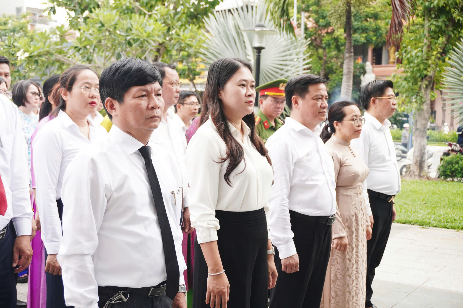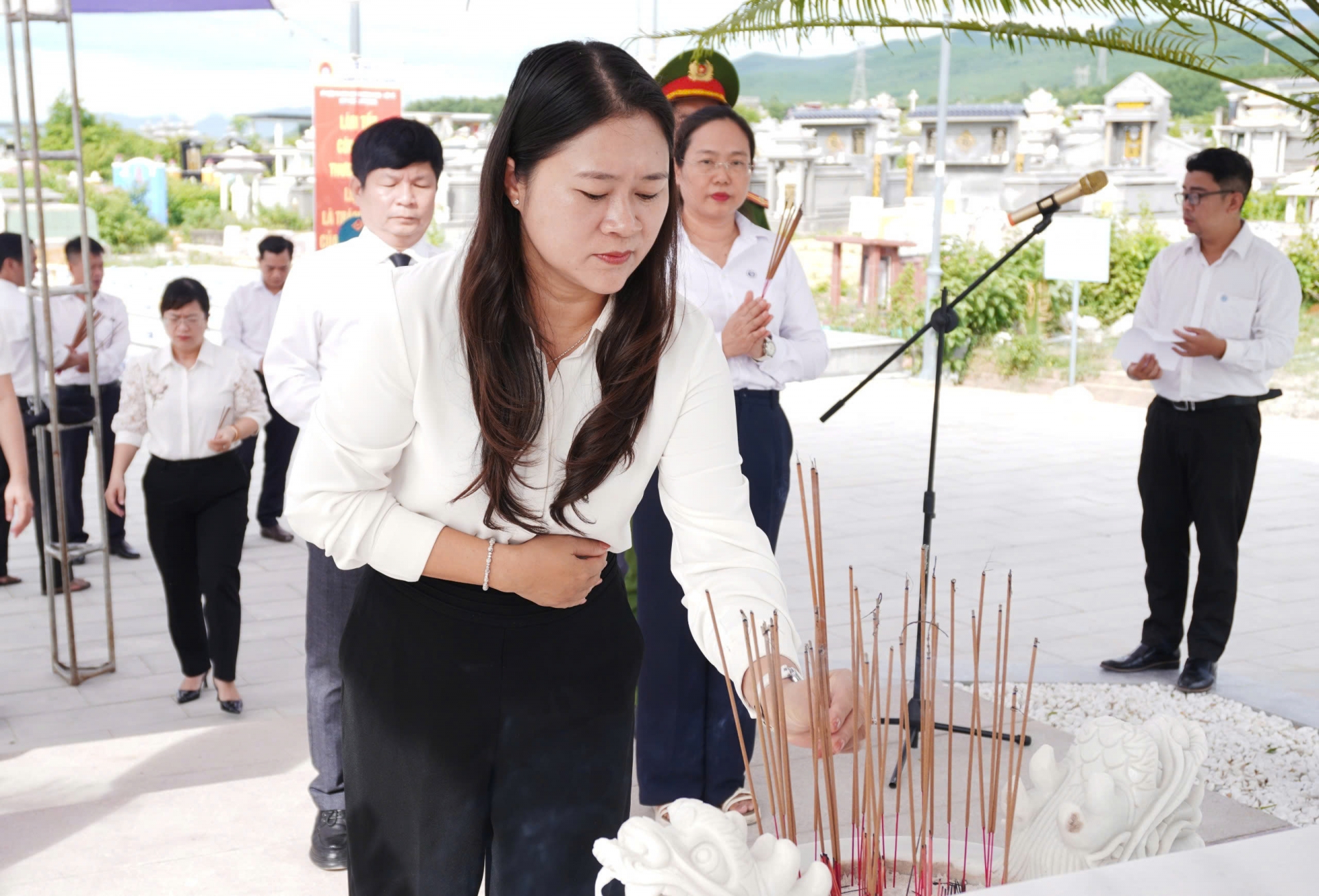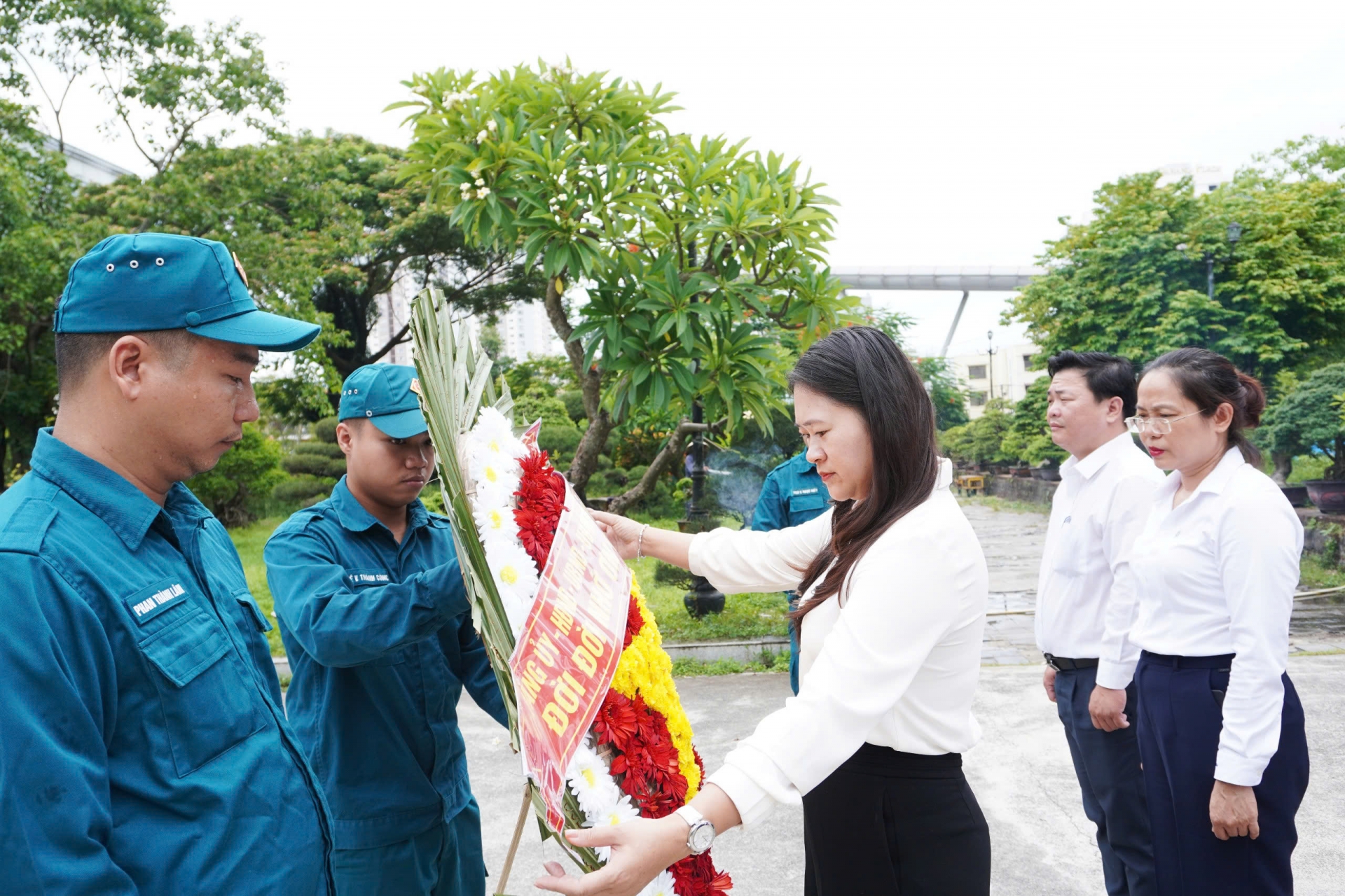 Bà Cao Thị Huyền trân - Bí thư Đảng uỷ, Chủ tịch HĐND lâm thời phường Hải Châu làm trưởng đoàn viếng hương tại Nghĩa trang liệt sỹ thành phố.