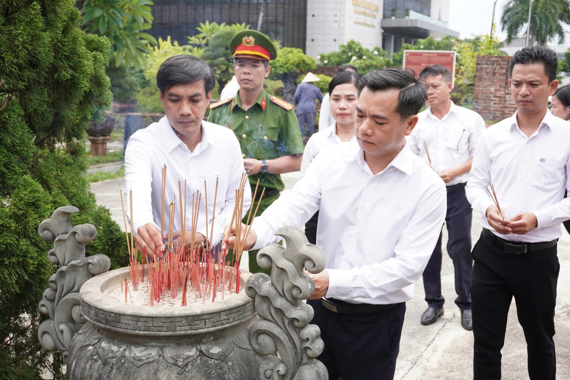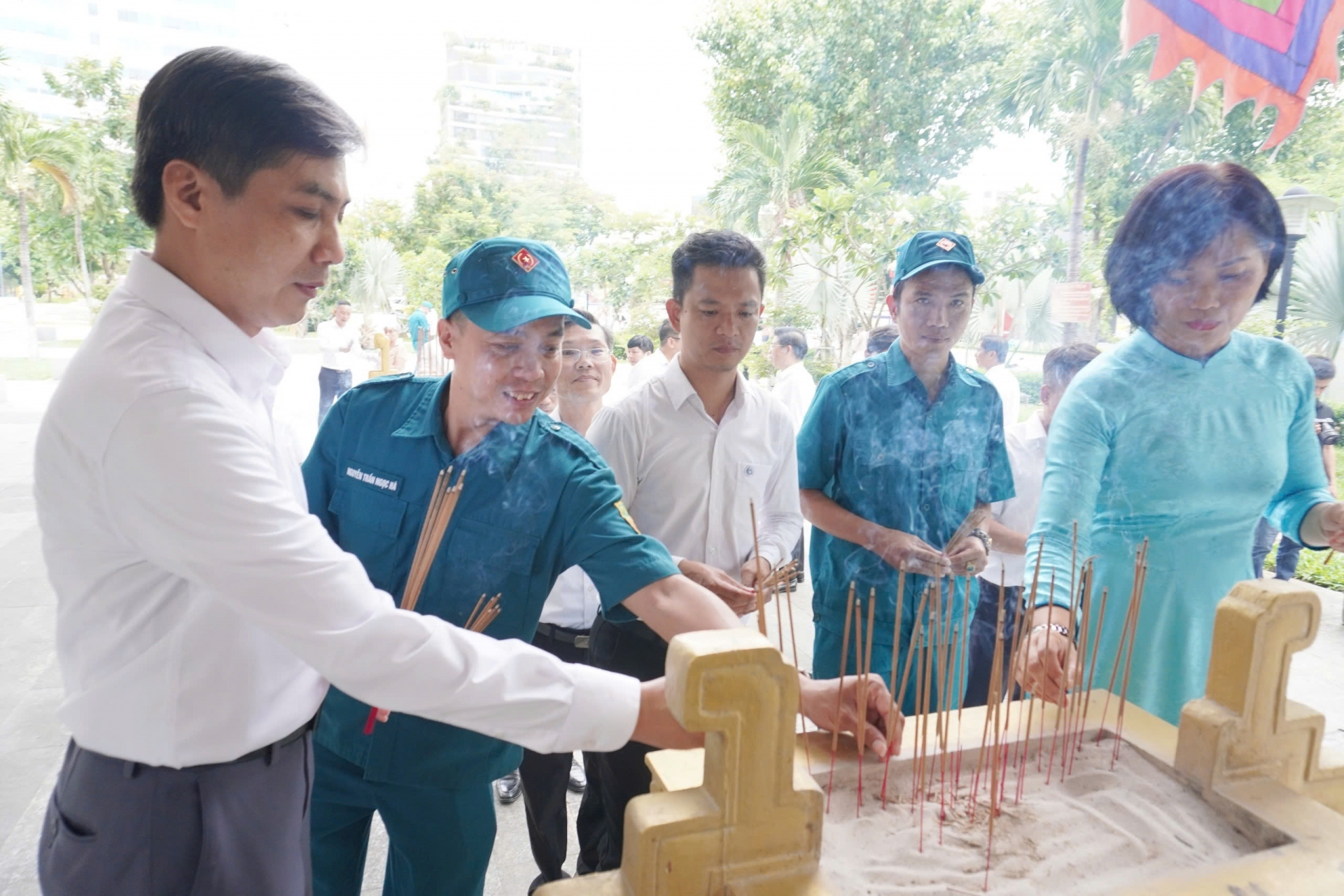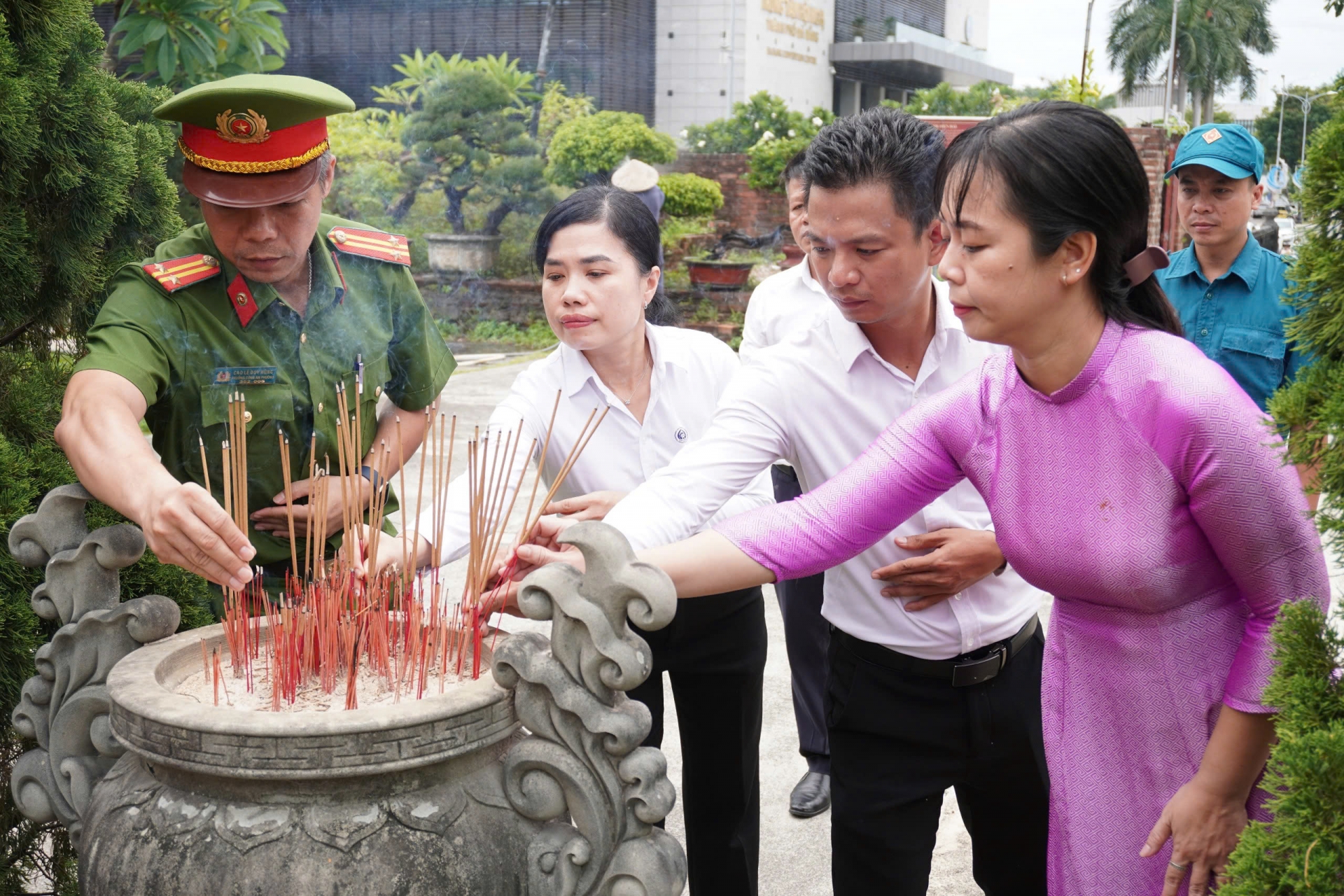 Đoàn Đảng ủy, HĐND, UBND, UBMTTQVN phường Hải Châu và phường Hoà Cường cùng dâng hương tại Nghĩa trủng Phước Ninh (phường Hải Châu).