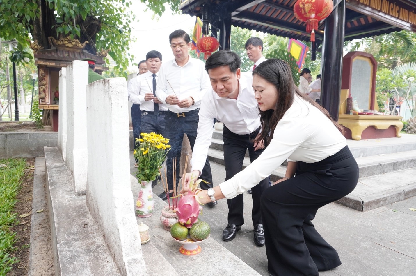 Đoàn viếng hương tại Nghĩa trủng Phước Ninh (xã Hoà Khương)
