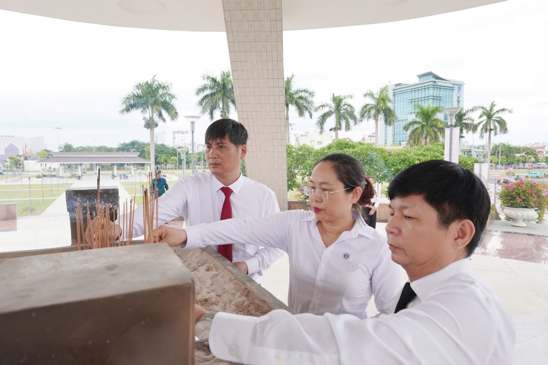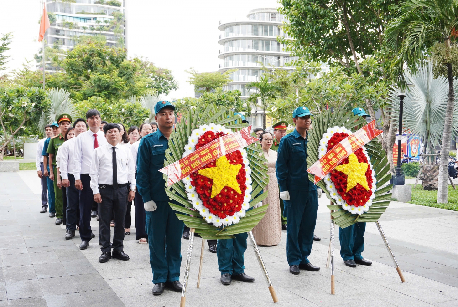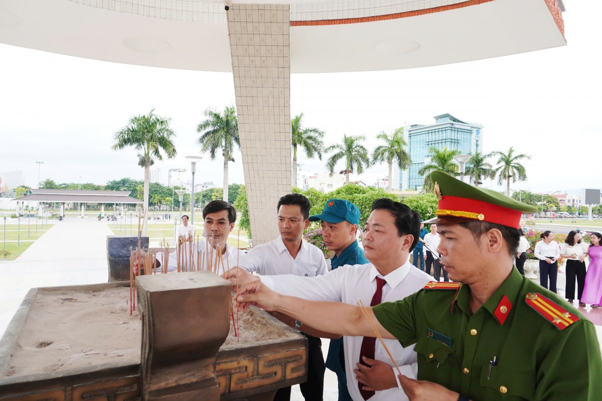 Đoàn viếng vương tại Đài Tưởng niệm thành phố.