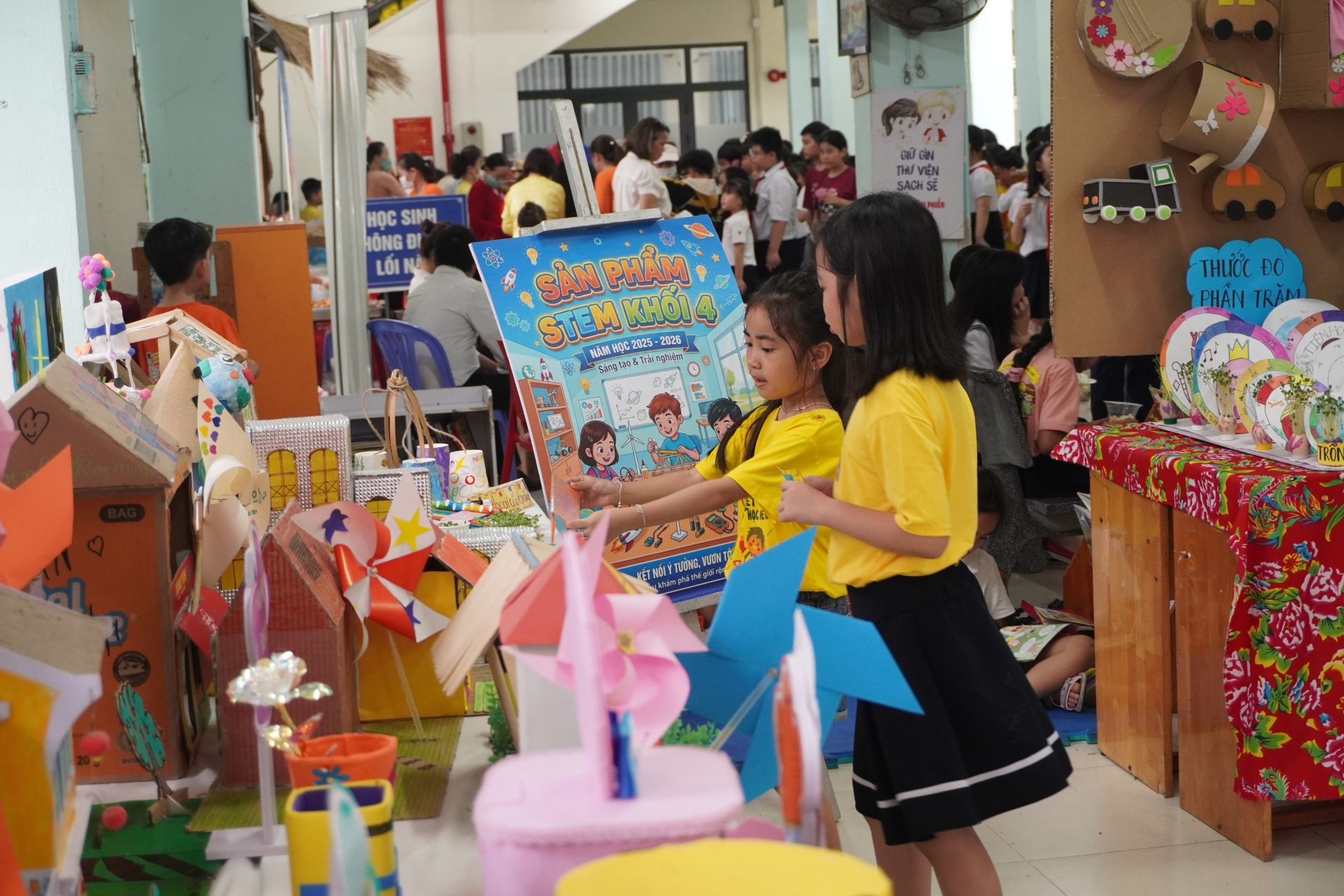 Ngày hội được tổ chức tại tại nhiều khu vực: sân trường, các sảnh và phòng chức năng, với chuỗi hoạt động đa dạng như thi kiến thức theo khối lớp, kể chuyện theo chủ đề, giao lưu tiếng Anh, hoạt động về sách và trưng bày sản phẩm STEM. Bên cạnh đó, học sinh còn được tham quan các gian hàng, tham gia trải nghiệm khoa học, công nghệ và các kỹ năng thực tiễn. Đặc biệt, các hoạt động về văn hóa đọc được triển khai sinh động thông qua các phần thi thiết kế bìa sách, viết cảm nhận, đặt tựa đề mới cho truyện và luyện kể chuyện, góp phần khơi dậy niềm yêu thích đọc sách trong học sinh.