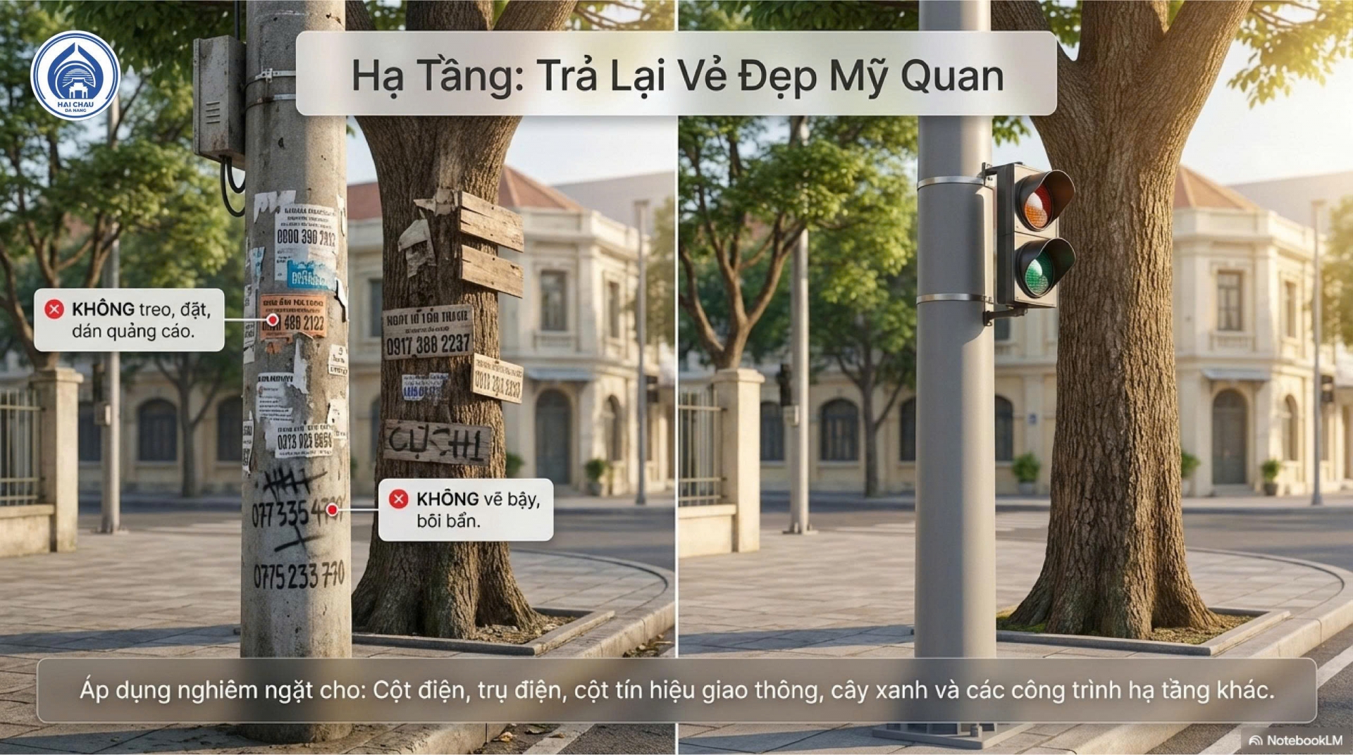 Thực hiện Kế hoạch 109 của UBND thành phố Đà Nẵng về bảo đảm trật tự đô thị và xây dựng nếp sống văn minh, UBND phường Hải Châu đã triển khai đồng bộ các biện pháp nhằm chấn chỉnh tình trạng dán quảng cáo trái phép và vẽ bậy trên địa bàn.