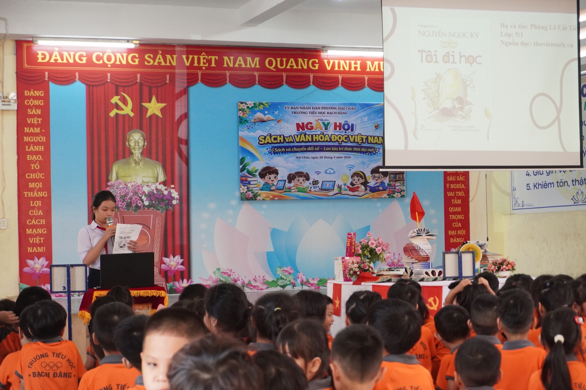 Chiều 20/4, Trường Tiểu học Bạch Đằng (phường Hải Châu) tổ chức Ngày hội Sách và Văn hóa đọc Việt Nam năm 2026 với chủ đề “Sách và chuyển đổi số – Lan tỏa tri thức thời đại mới”. Hoạt động thu hút đông đảo cán bộ, giáo viên và học sinh tham gia trong không khí hào hứng, sáng tạo.