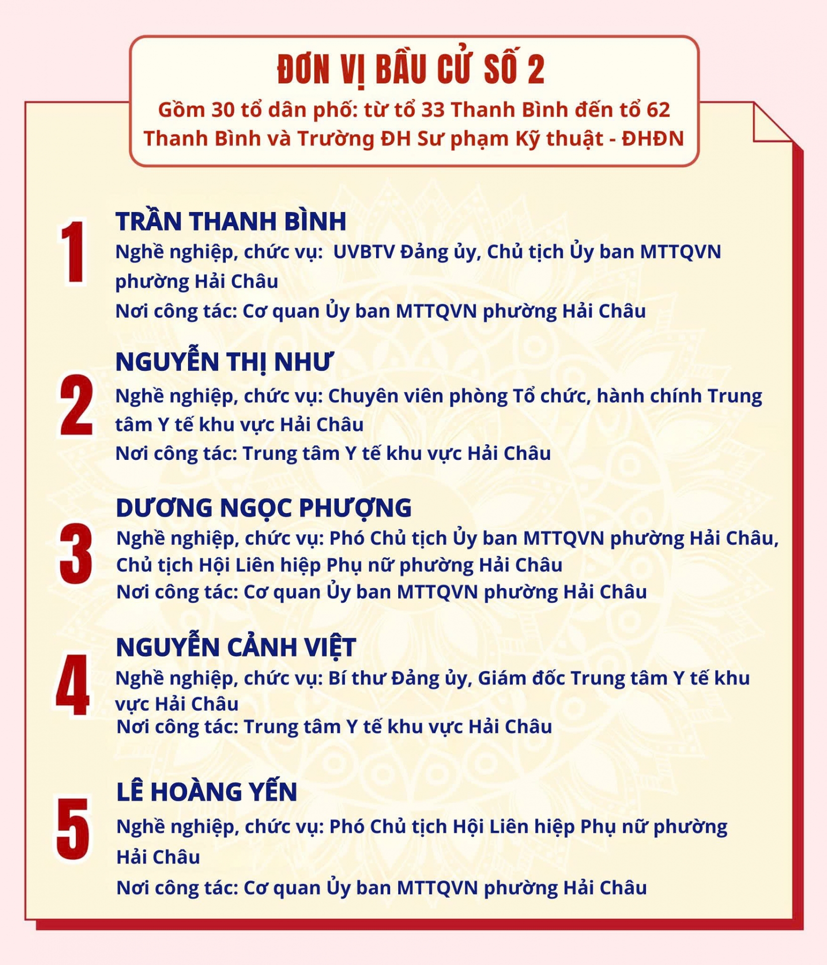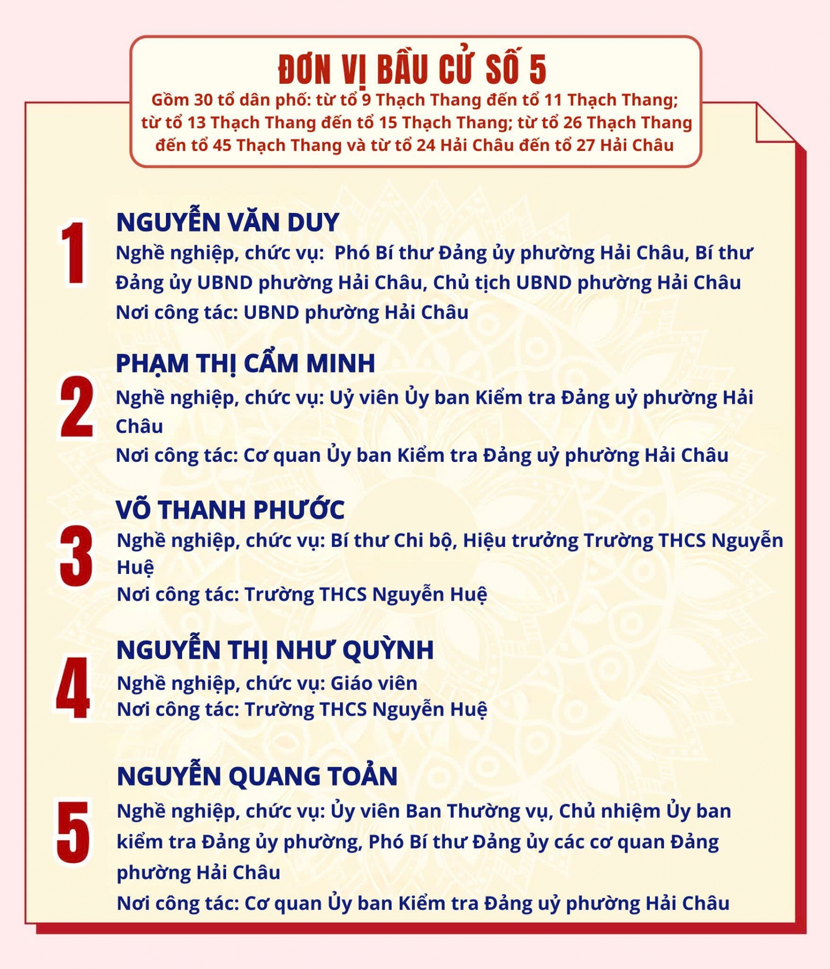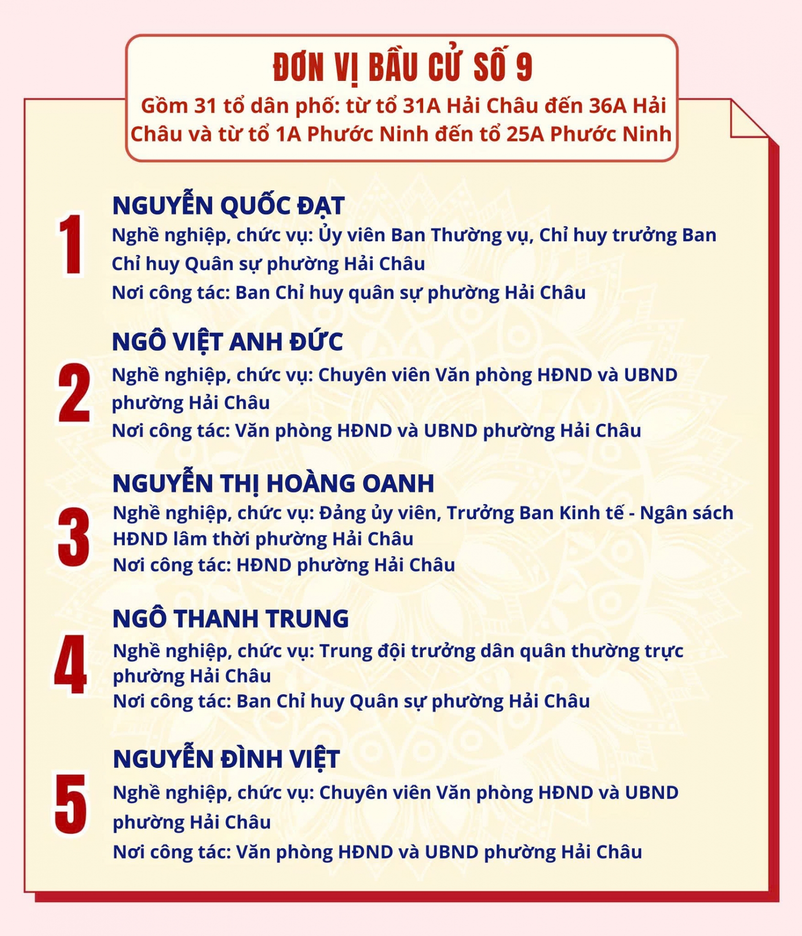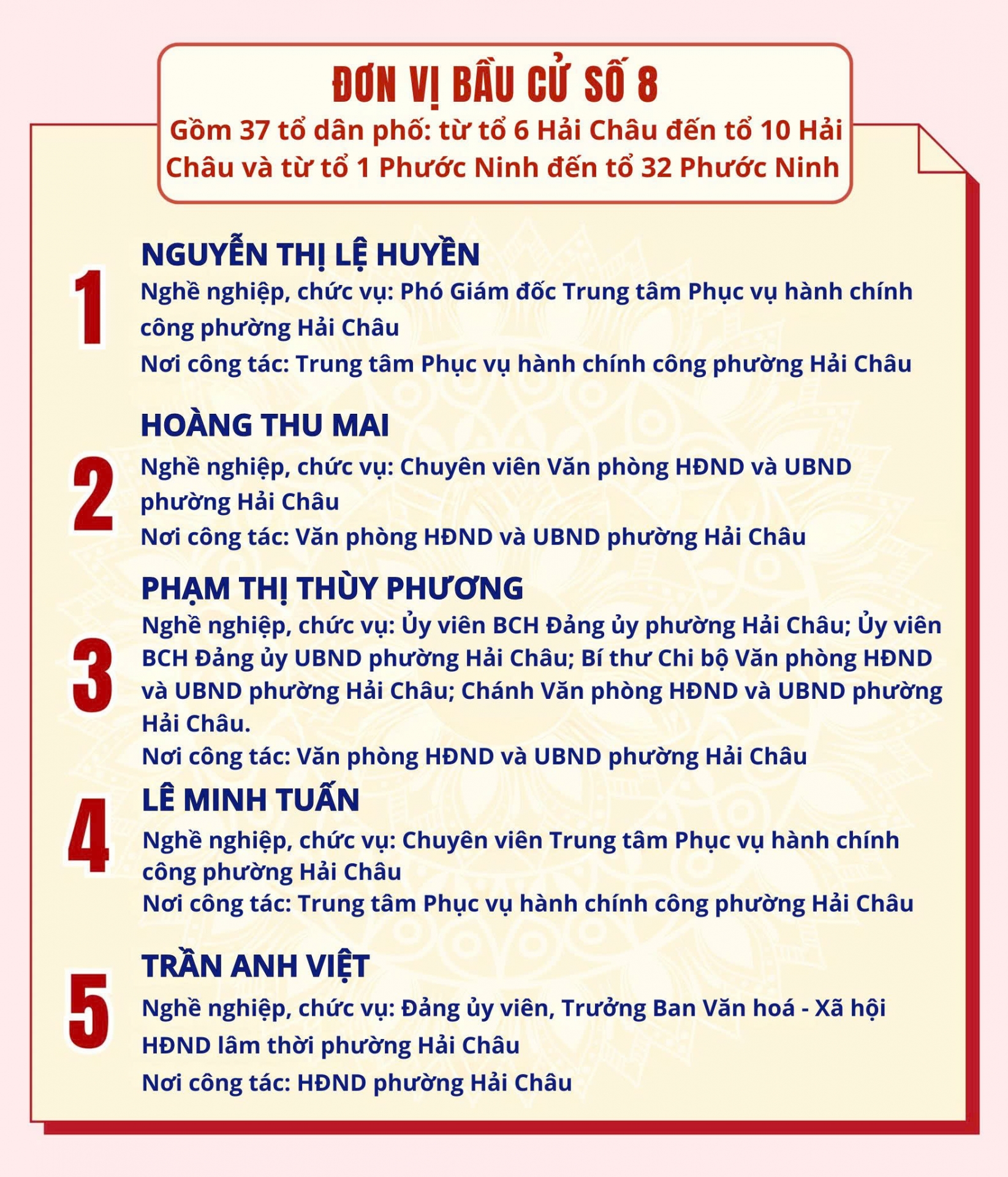 Danh sách chính thức những người ứng cử đại biểu HĐND phường Hải Châu khoá I, nhiệm kỳ 2026-2031