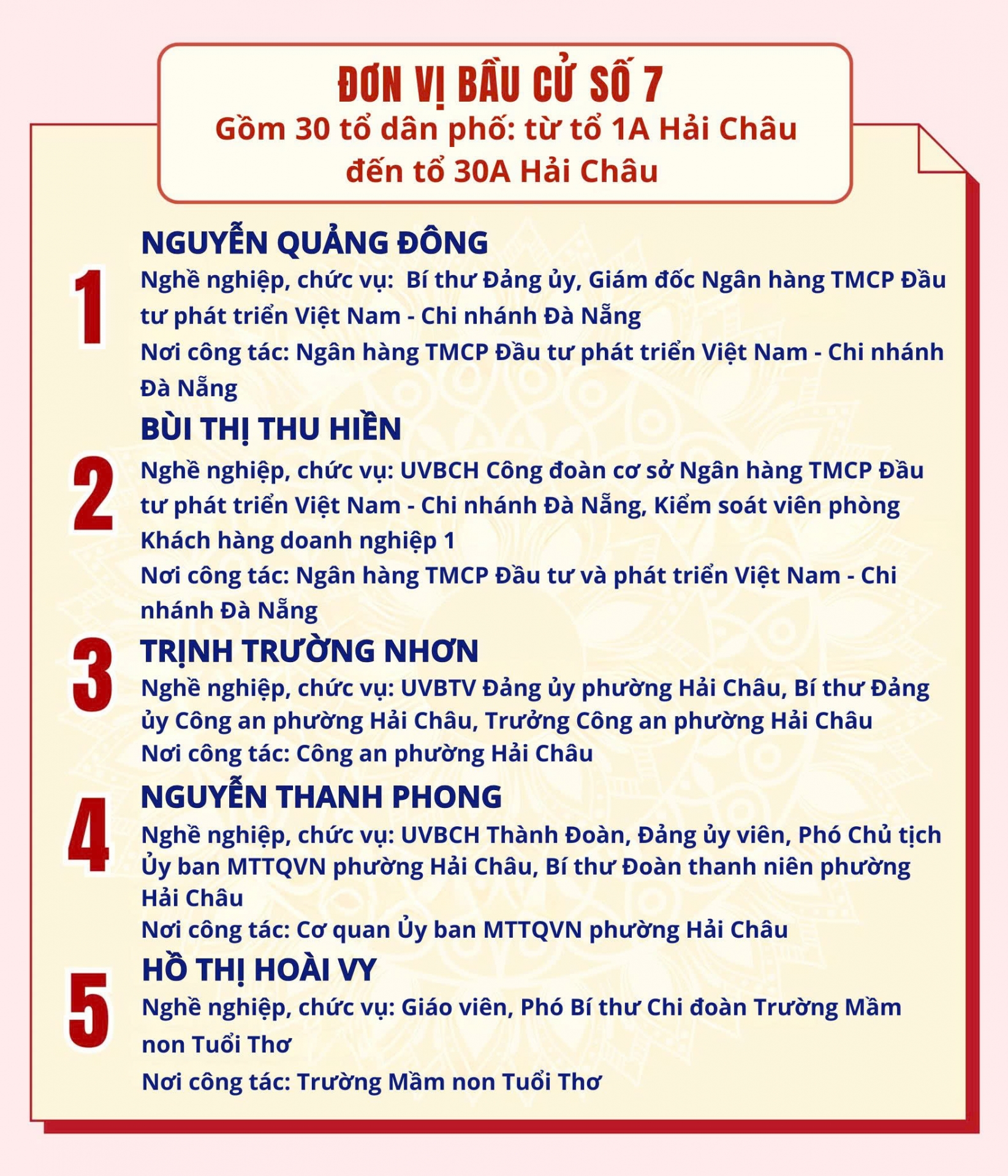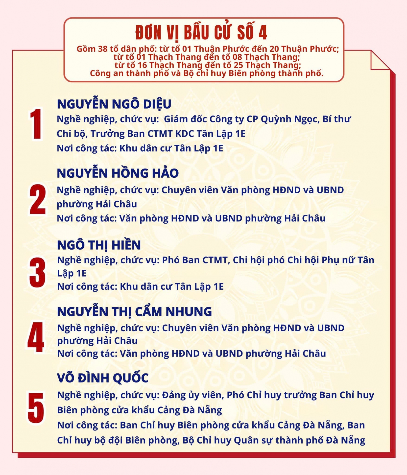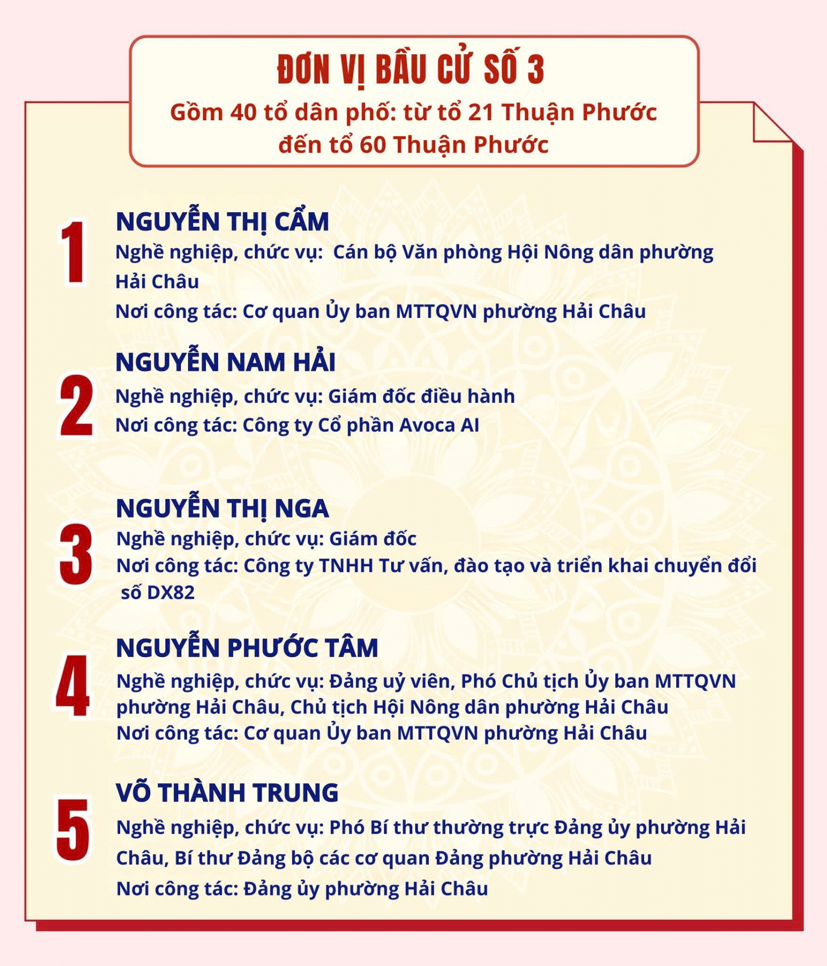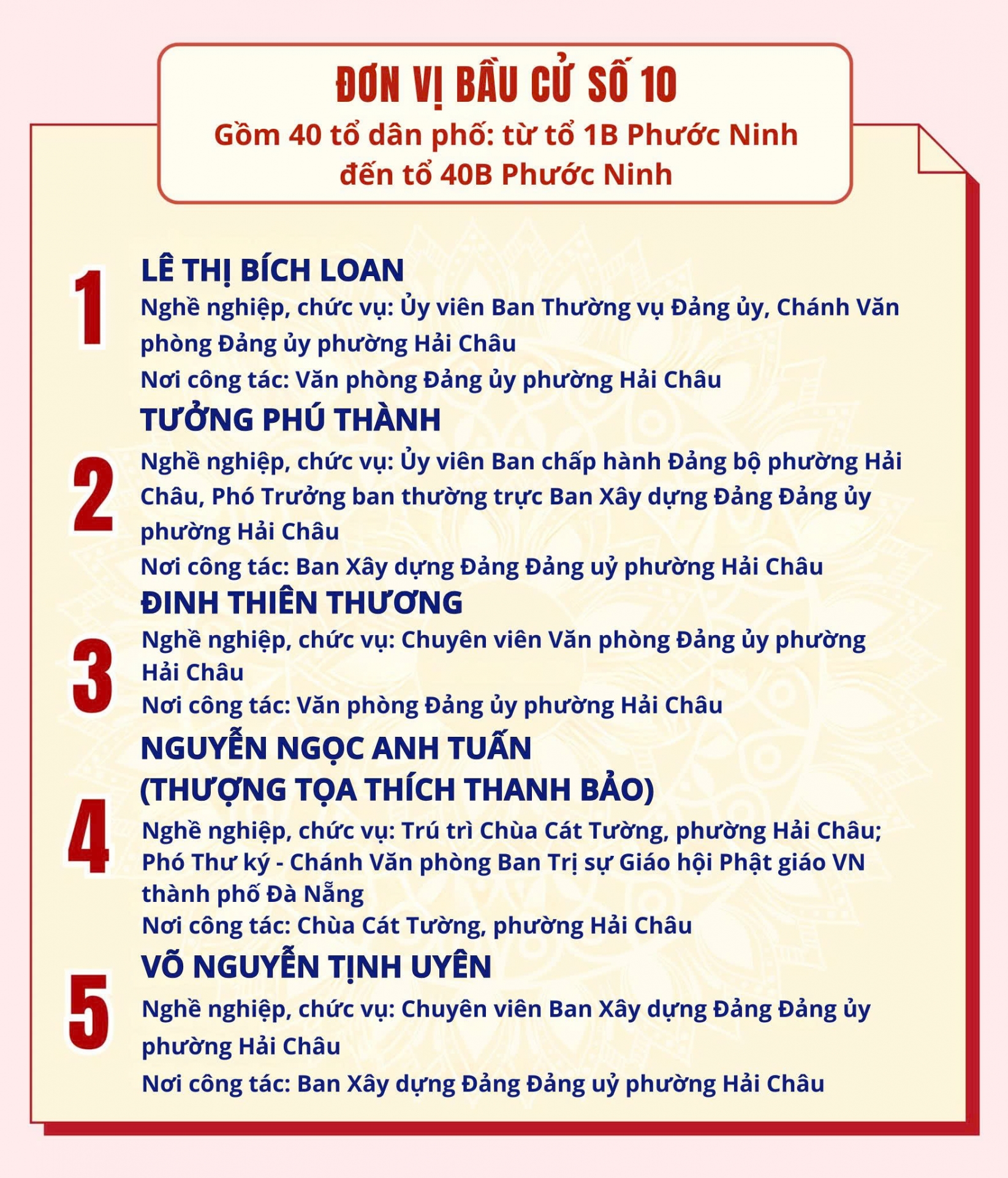 Danh sách chính thức những người ứng cử đại biểu HĐND phường Hải Châu khoá I, nhiệm kỳ 2026-2031