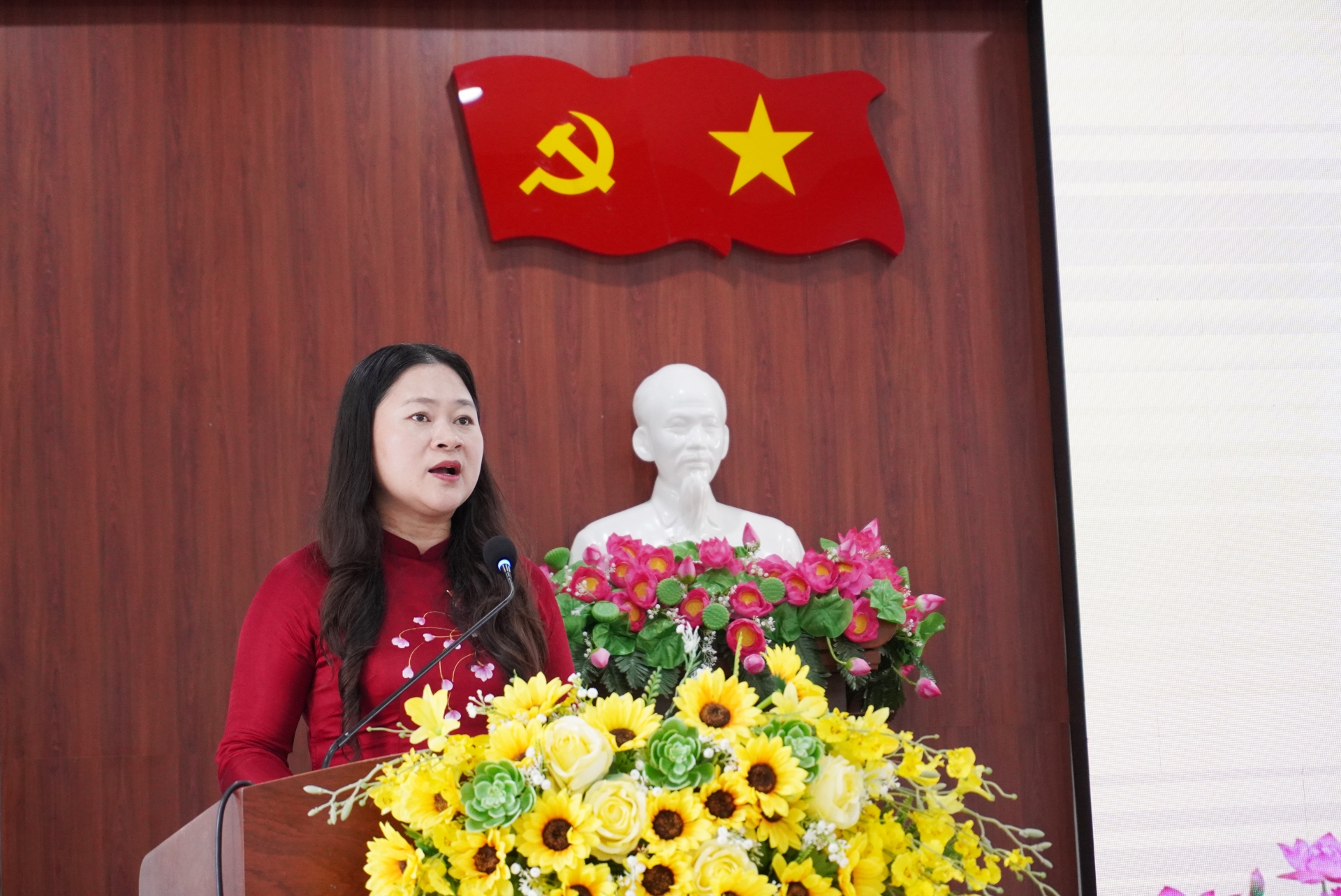 Bà Cao Thị Huyền Trân phát biểu tại hội nghị