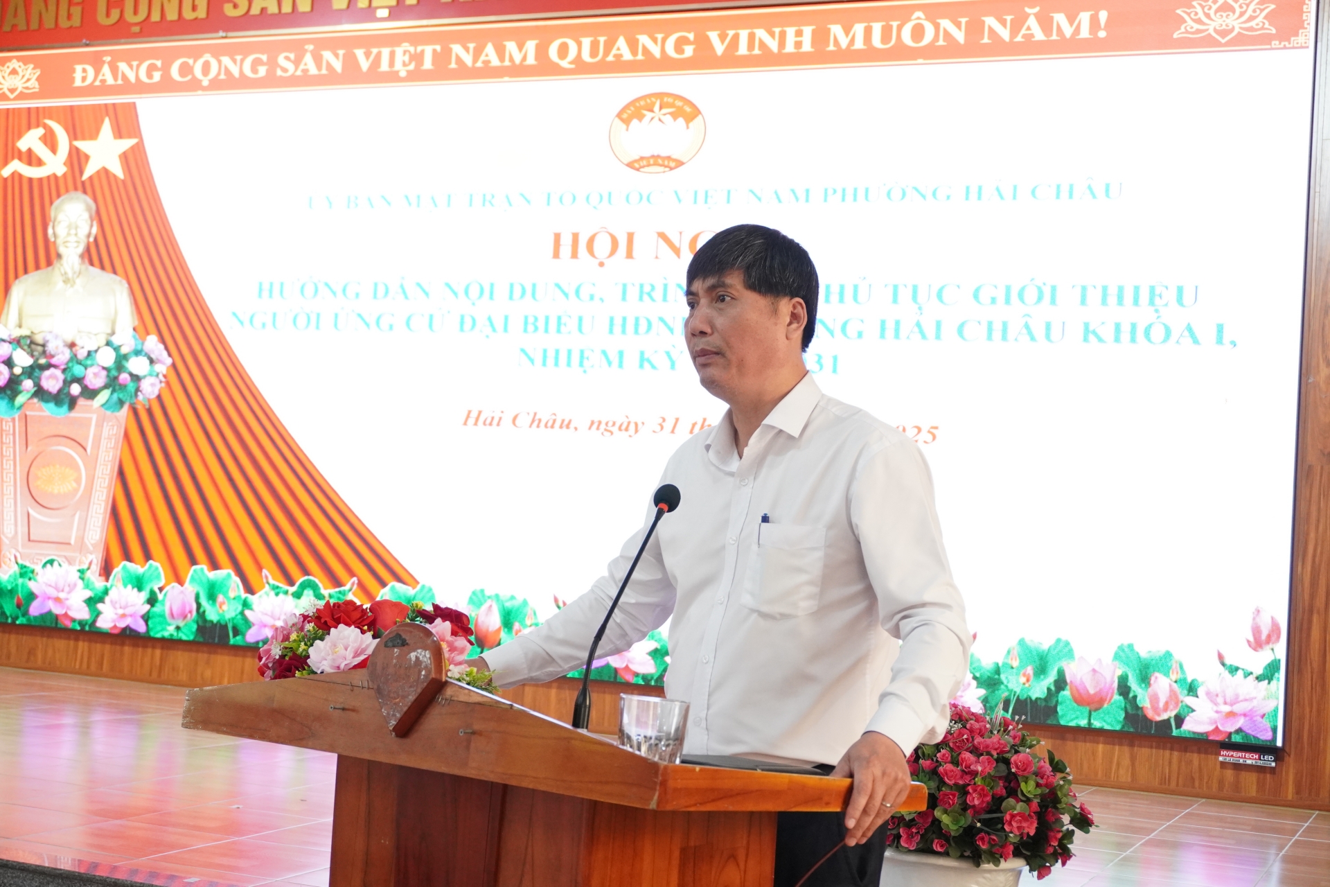 Tại hội nghị, Ban Thường trực Ủy ban MTTQ Việt Nam phường Hải Châu đã phổ biến cụ thể quy trình, các bước thực hiện trong công tác giới thiệu người ứng cử; làm rõ trách nhiệm của từng cơ quan, tổ chức, đơn vị; đồng thời trao đổi, giải đáp những nội dung còn vướng mắc.