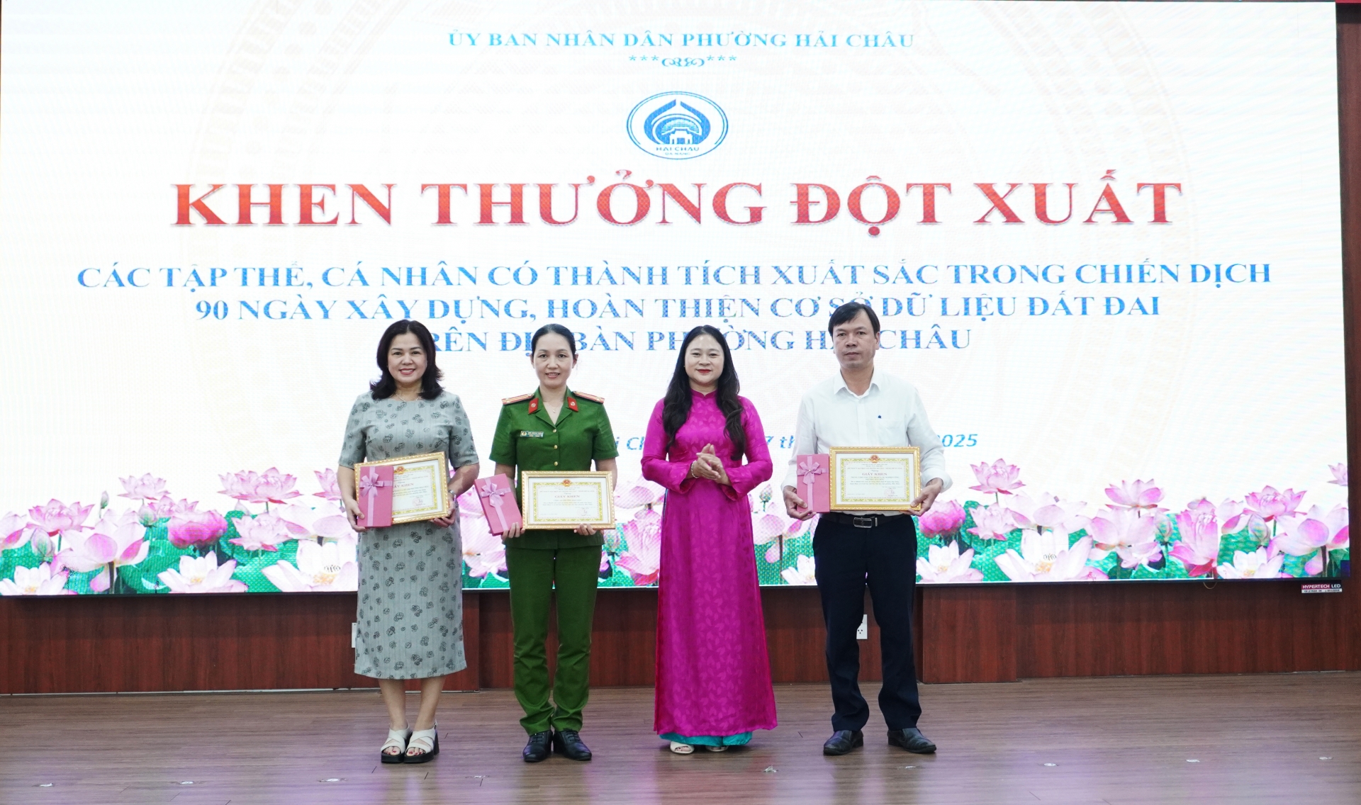 Chiều 7/11, phường Hải Châu đã tổ chức Hội nghị khen thưởng đột xuất các tập thể, cá nhân có thành tích xuất sắc trong chiến dịch 90 ngày xây dựng, hoàn thiện cơ sở dữ liệu đất đai trên địa bàn phường Hải Châu.