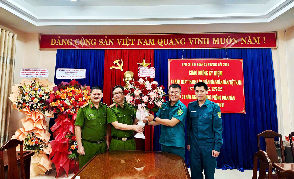 Nhân kỷ niệm 81 năm ngày thành lập Quân đội Nhân dân Việt Nam (22/12/1944 - 22/12/2025) và 36 năm Ngày hội Quốc phòng toàn dân (22/12/1989 - 22/12/2025); lãnh đạo phường Hải Châu do đồng chí Cao Thị Huyền Trân – Bí thư Đảng uỷ, Chủ tịch HĐND lâm thời phường làm trưởng đoàn cùng Biên phòng Cửa khẩu cảng Đà Nẵng, Công an phường đã đến thăm lãnh đạo, chỉ huy và cán bộ, chiến sĩ Ban Chỉ huy Quân sự phường.