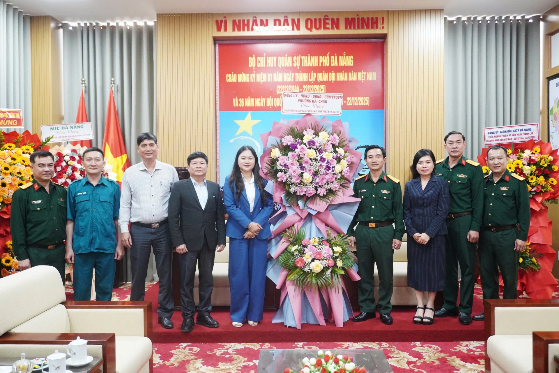Nhân kỷ niệm 81 năm ngày thành lập Quân đội Nhân dân Việt Nam (22/12/1944 - 22/12/2025) và 36 năm Ngày hội Quốc phòng toàn dân (22/12/1989 - 22/12/2025); lãnh đạo phường Hải Châu do đồng chí Cao Thị Huyền Trân – Bí thư Đảng uỷ, Chủ tịch HĐND lâm thời phường làm trưởng đoàn đã đến thăm lãnh đạo, chỉ huy và cán bộ, chiến sĩ tại Bộ Tư lệnh Quân khu 5, Bộ Chỉ huy quân sự thành phố, Ban Chỉ huy Phòng thủ khu vực 1-Cẩm lệ, Sư đoàn Phòng không - Không quân 372 ( Quân chủng Phòng không - Không quân), Biên phòng Cửa khẩu cảng Đà Nẵng.