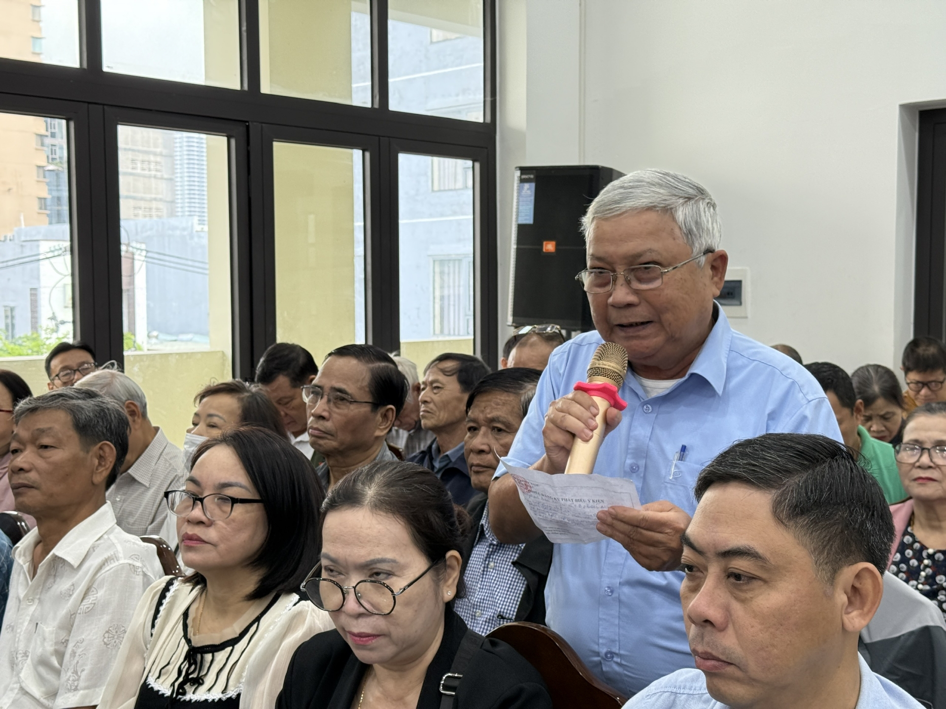 Cử tri tại điểm cầu UBND phường phát biểu ý kiến