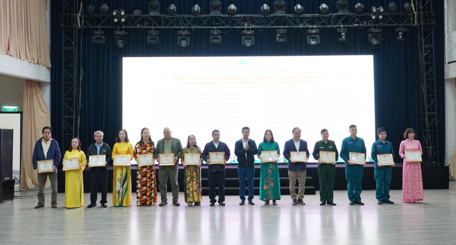 Chủ tịch UBND phường Hải Châu cũng đã ban hành Quyết định số 2192 về việc công nhận 17 tập thể và 210 cá nhân đạt danh hiệu lao động tiên tiến và Quyết định 2193 về việc tặng giấy khen cho 4 tập thể và 45 cá nhân hoàn thành xuất sắc nhiệm vụ năm 2025 và Quyết định số 2195 về việc tặng giấy khen cho 55 tập thể và 73 cá nhân đã có thành tích xuất sắc trong việc thực hiện phong trào Thi đua yêu nước năm 2025.