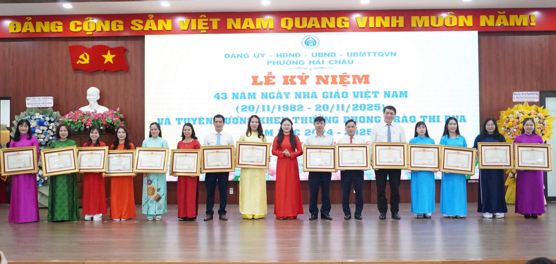 Chiều 14/11, trong không khí cả nước hướng về Ngày 20/11, Ngày Nhà giáo Việt Nam, phường Hải Châu đã tổ chức Lễ kỉ niệm 43 năm ngày nhà giáo VN (20/11/1982-20/11/2025) và Tuyên dương khen thưởng phong trào thi đua năm học 2024-2025.